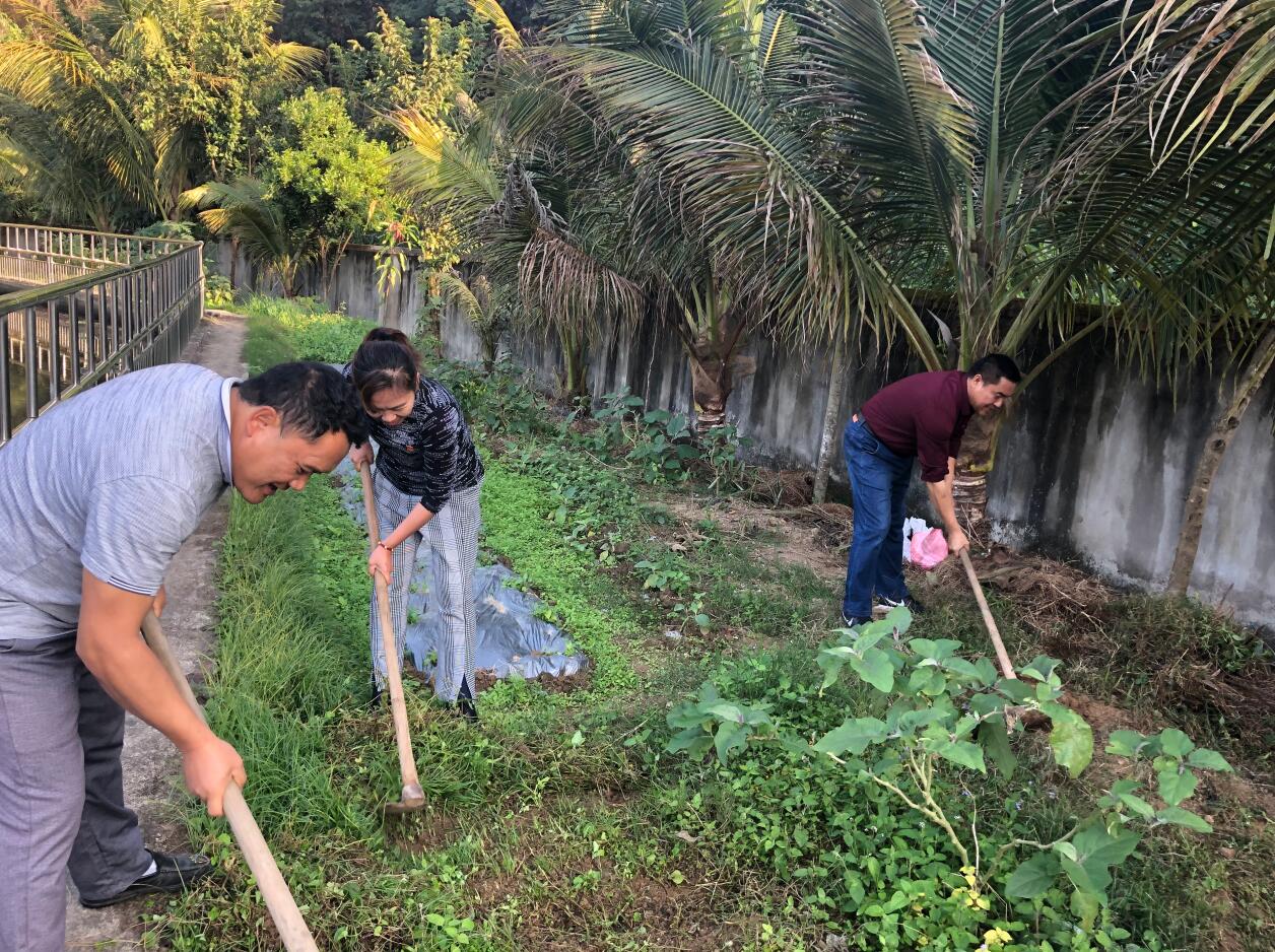 2019年12月30日,孟定騰鑫實業(yè)有限責(zé)任公司支部委員會組織黨員開展第三次黨小組活動,在公司污水處理池旁種植蔬菜。